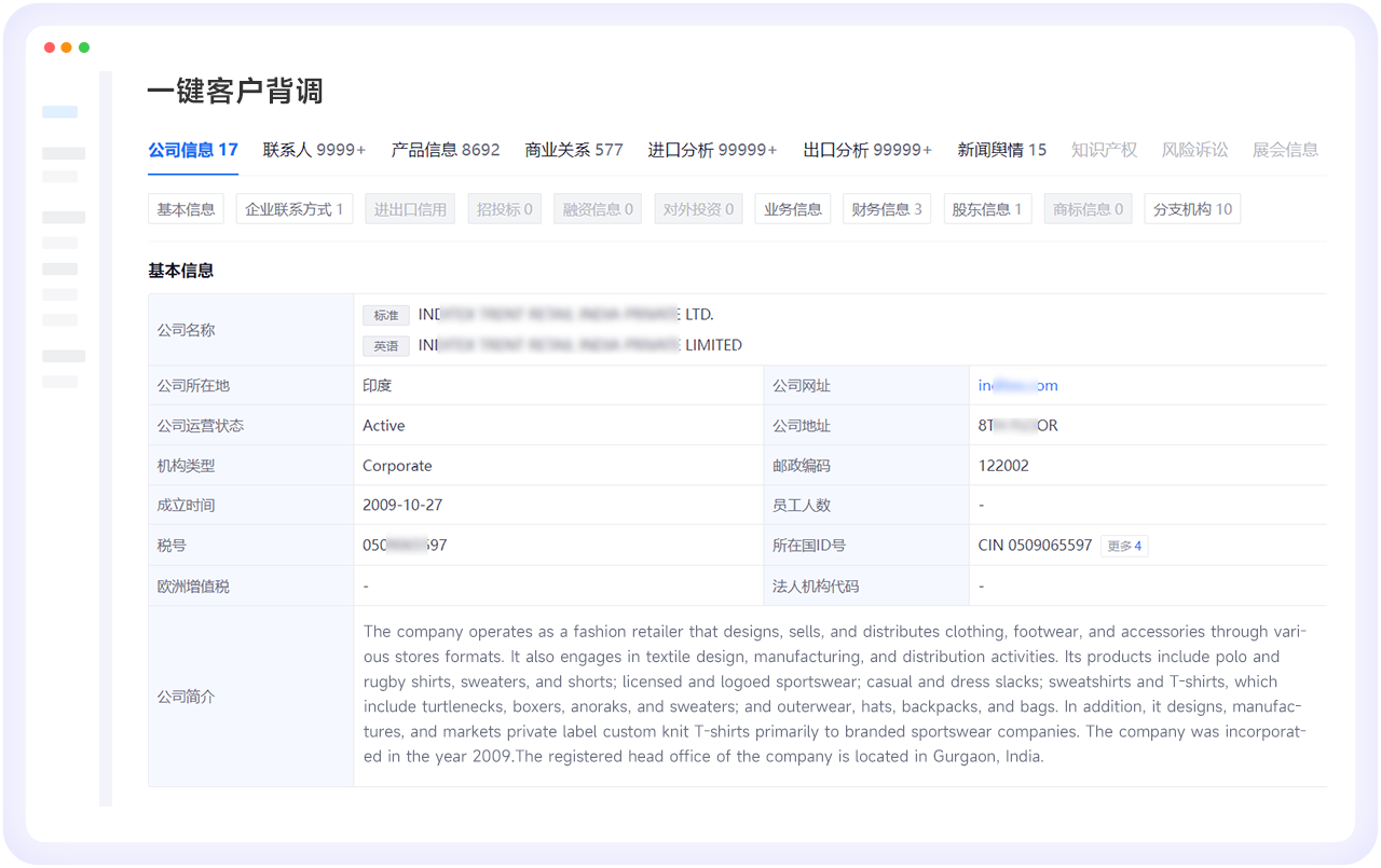 依托AI全新打造的智能、精准的高价值客户开发利器,给予具备全球视野的市场洞察、潜客获取、竞企监测、客户分析等一站式服务