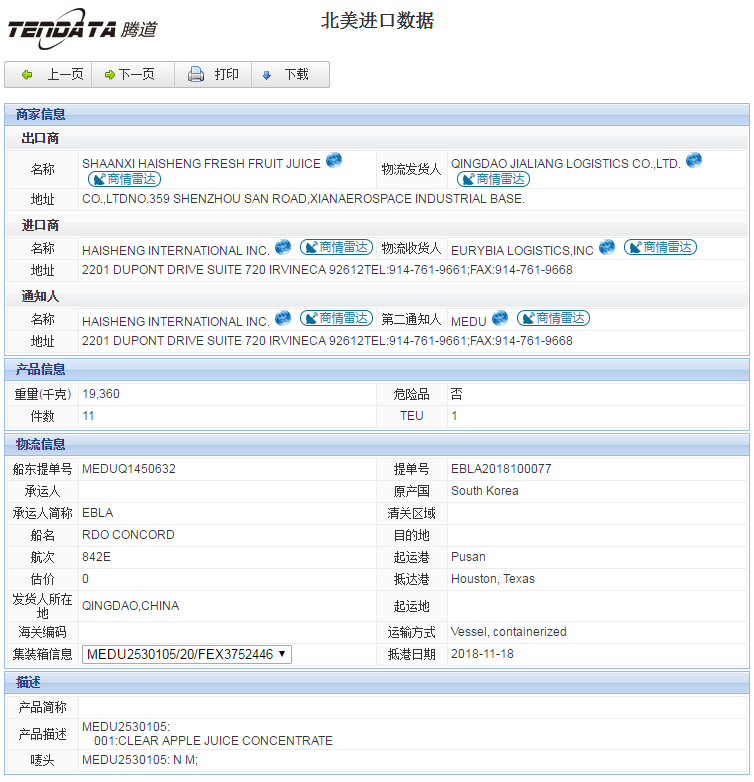 北美进口数据