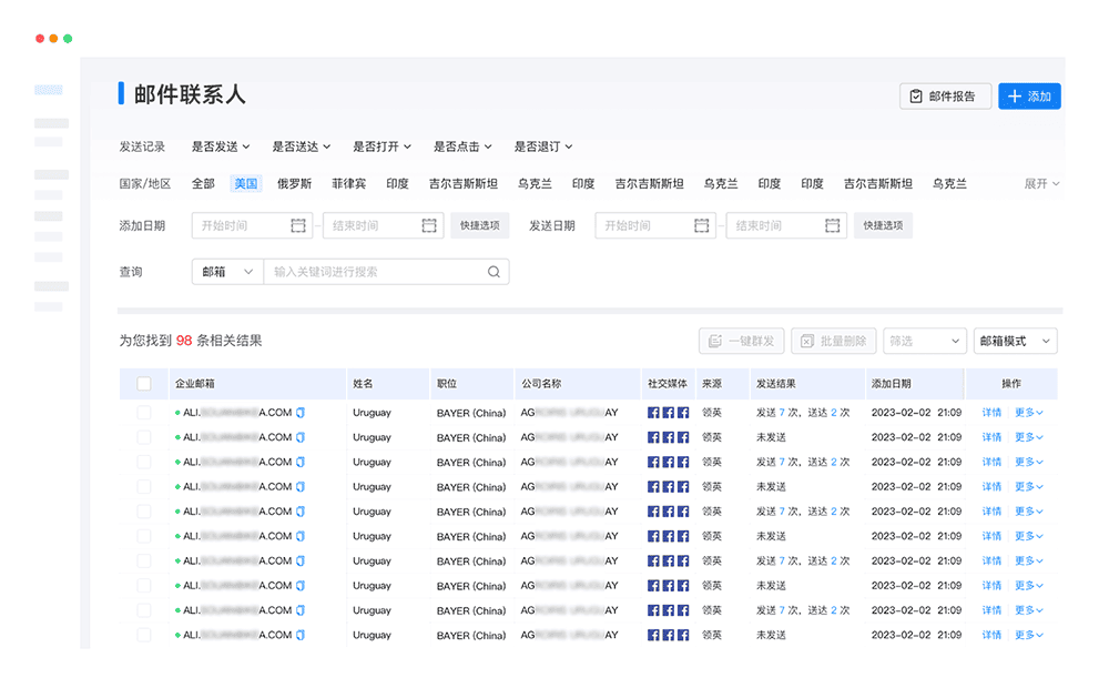涵盖电话、邮箱、社媒等多渠道联系人信息,并顺利获得PA真人视讯云邮通及其他工具一键触达采购决策人,进行外贸找客户。